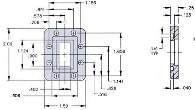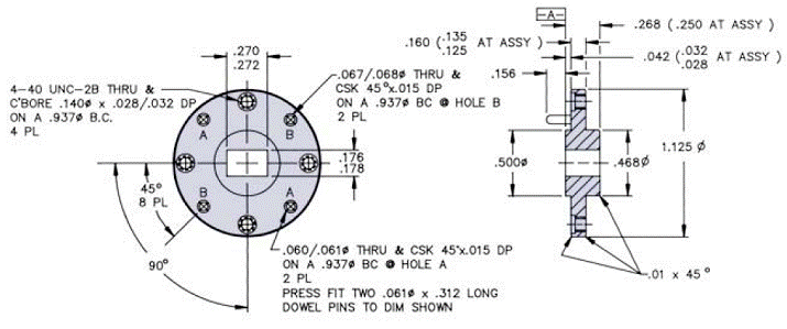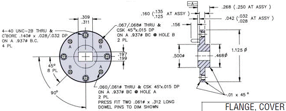 All holes are of clearance type. Can be mated with choke, cover, and cover