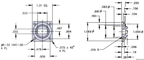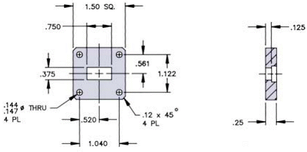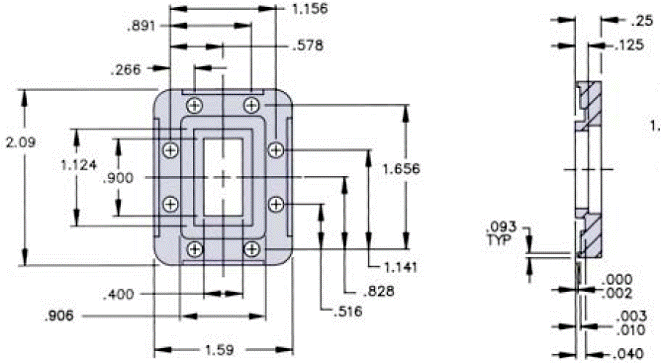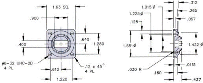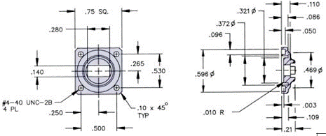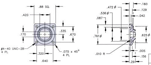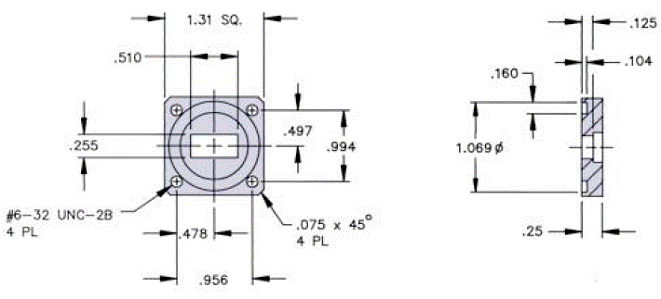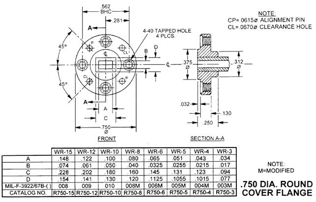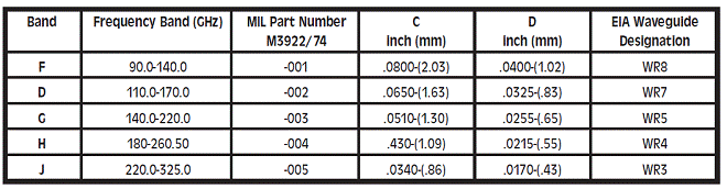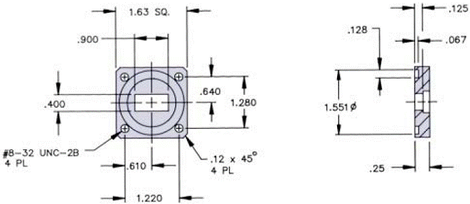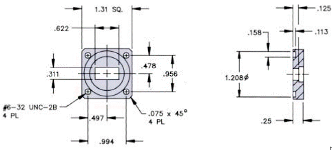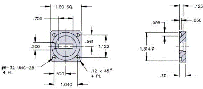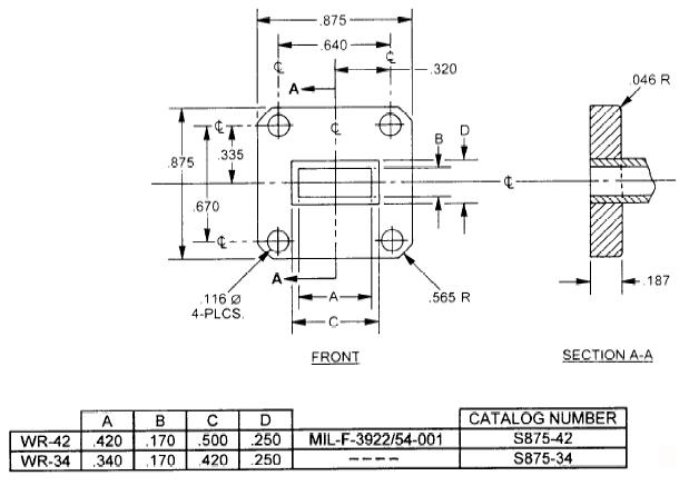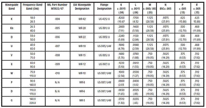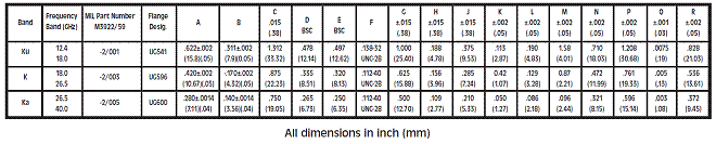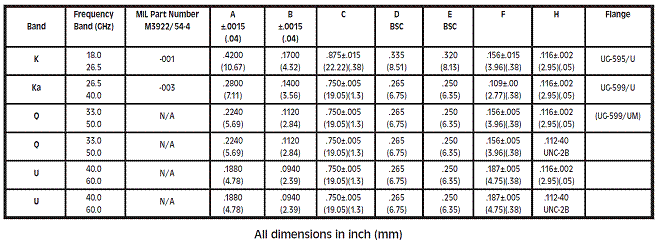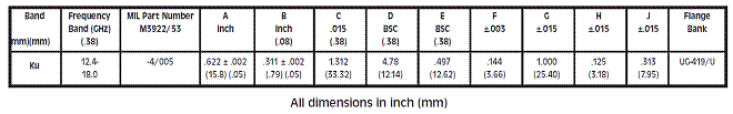 UBR Flanges : 0.750" square flange (UG-599/U), 0.875" square flange
