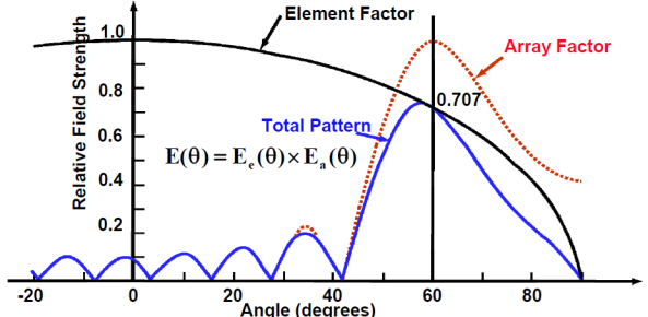 - 배열의 방사패턴 = 방사소자 방사패턴 × 배열인자