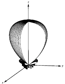 그림: z-축 상에 배열된 선형배열 안테나의 방사패턴. (a) 측면방사, (b) 종단방사, (c) 주사배열(θ0 = 60º)[Balanis]