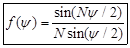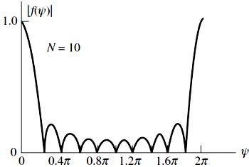 그림: 등간격 균일급전 선형배열 안테나의 정규화한 배열인자[Stutzman]