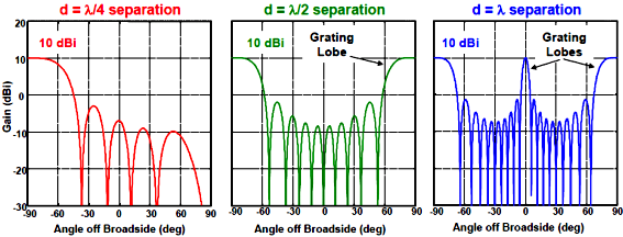 에서 격자엽(grating lobe)의 일부라도 나타나지 않게 하려면