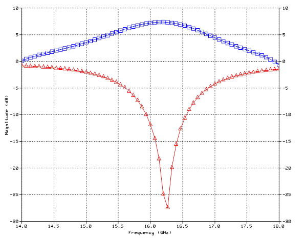 - Ensemble 5.0을 이용한 해석 결과: 이득 17.1dBi