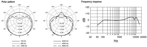 Figure: KM184 microphone pickup patterns (left) and freqeuncy