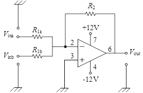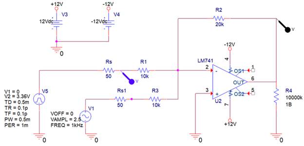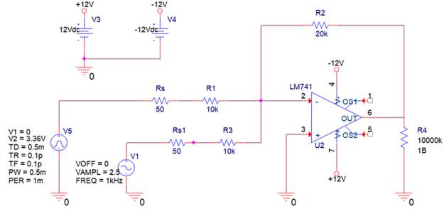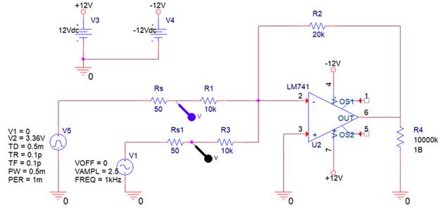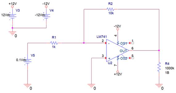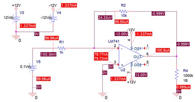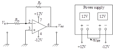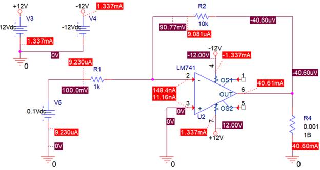 Op amp = LM741; +Vs = +12 VDC; -Vs = -12 VDC
