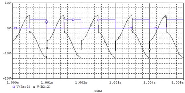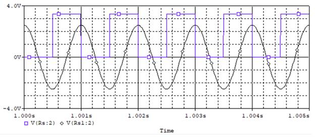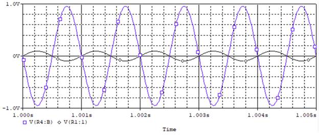 7) Vin = 0.2 Vpp, f = 1 kHz로 하고 입력전압과 출력전압을 동일한 그래프에 도시하라.