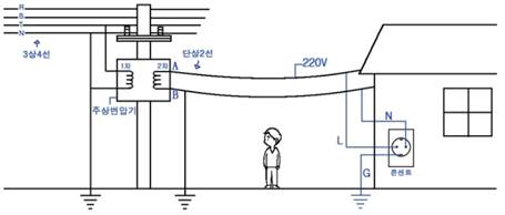 그림: 가정/사무실용 220VAC 단상 전원의 결선