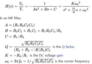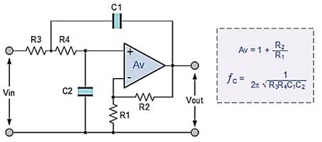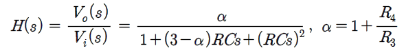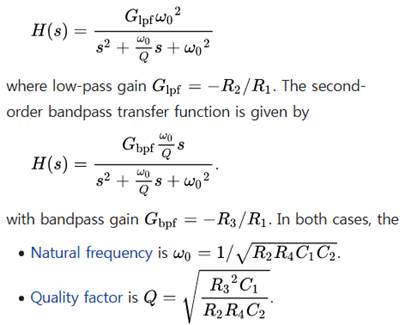- 특징: 2차 능동필터 구조, VCVS 필터 구조의 일종, 회로단순